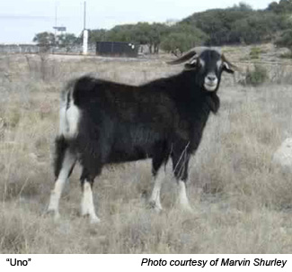 So Shurley started with Uno, and set out to find some Spanish nannies. He found out that Eugene Bradshaw in El Dorado, Texas had put together a group of 900 Spanish nannies; Shurley chose what he considered to be the top 49 nannies out of the bunch and bought them. Since then he has added a performance-tested Sawyer billy to breed with Uno’s progeny, and to produce sires for use in his composite breeding program. He’s breeding both Spanish billies, Uno and Eddie, to Boer and Spanish nannies.